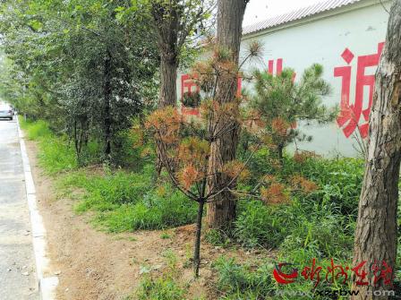 本報訊 近日,記者途經城區龍崗街時發現,在忻州市第三中學大門西面道路旁的綠化帶中,有部分樹木出現干枯現象,與旁邊郁郁蔥蔥的綠籬形成了鮮明對比,影響市容市貌。希望相關部門及時“補綠”,并加大管養維護力度,確保樹木枝繁葉茂,給市民營造一個綠色宜居的居住環境。 (張志遠)
