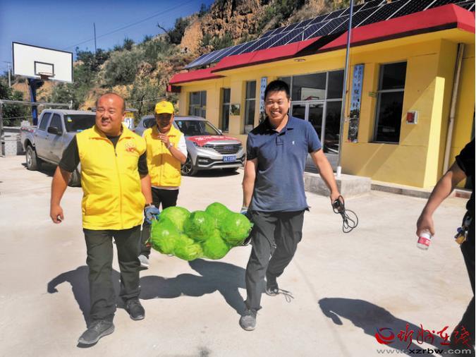 王志偉(右)為貧困戶送菜