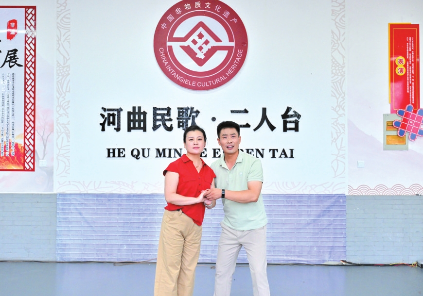 走進河曲縣白樸公園,一段清亮婉轉的唱腔便隨風入耳——河曲縣民歌二人臺藝術團演員鄔光正和同事們全情投入,打磨大型非遺音樂劇《大河長歌》。他額角滲著細密的汗珠,當唱到“好兒女今日唱長歌,勝過了前輩了不得”時,突然停了下來,對搭檔說:“再來一遍,剛才那口氣沒頂滿。”這份對細節的較真,藏著他對二人臺藝術最樸素也最深厚的敬畏。