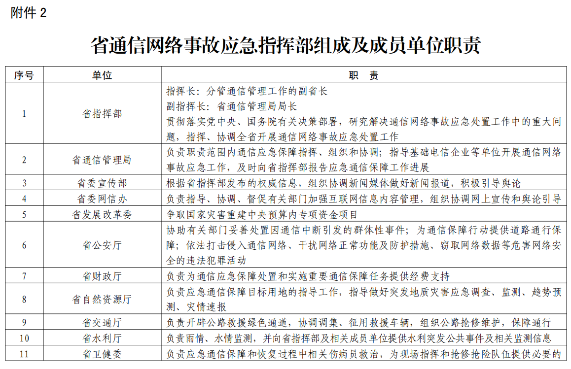 2.省通信網絡事故應急指揮部成員單位職責