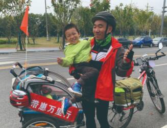 幾個月前,湖南株洲45歲的羅新華做出一個很多人難以理解的決定,他要騎自行車帶著三歲半的兒子高高進行一次長達數千公里的長途騎行。10月2日出發,目前他已騎行1200多公里,途經湖南、湖北、江西、安徽,到達江蘇境內。沿途,高高見到了大自然中很多新鮮事物,而羅新華也借這次機會第一次與兒子長時間朝夕相處。