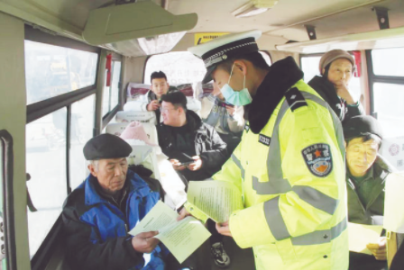 各縣市公安交警在客運站、廣場等地設立交通安全宣傳咨詢臺、擺放交通安全宣傳展板、懸掛宣傳條幅、發放春運交通安全提示的宣傳資料,向過往的群眾講解道路交通安全法律法規和冬季出行常識,說明酒駕醉駕、超員超載超速、疲勞駕駛、不系安全帶、不佩戴安全頭盔等交通違法行為的危害及后果,引導廣大交通參與者自覺遵守交通法律法規,安全文明出行,全力護航群眾平安出行。活動現場,電子屏上滾動播放著的“守法規知禮讓,共筑平安中國年”“飲酒不駕車,寅虎享平安”等橫幅標語格外醒目,春運主題的宣傳海報和短視頻,吸引著人們駐足觀看。