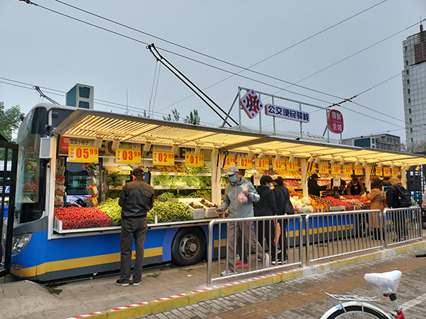 柳芳地鐵站附近開設“公交便民驛棧”,方便居民購買果蔬。人民網實習生 曹瑞穎攝