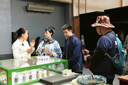 4.本報直播團隊在唐都推光漆藝文化產業創意園直播。