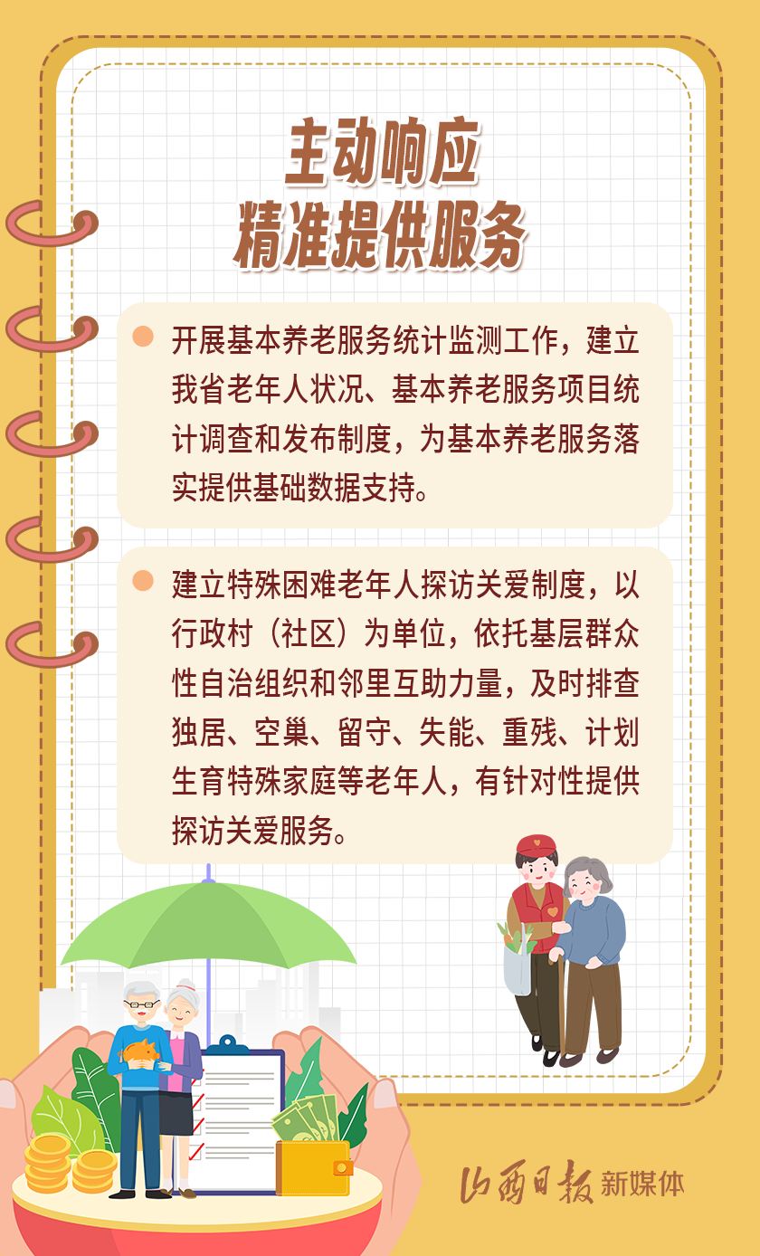 近日,我省出臺《山西省基本養老服務體系建設實施方案》,以積極應對全省人口老齡化,扎實推進基本養老服務體系建設,切實提高基本養老服務的公平性、可及性,不斷增強老年人的獲得感、幸福感、安全感。