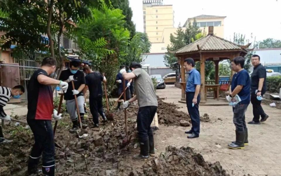 國家開發銀行鄉村振興部的田扶搖正和國家開發銀行的碩博志愿者隊一起,在社區清理淤泥:“大家都是利用周末時間自發前來的志愿者,有的同事還帶了家屬一起來支援災區,也都想力所能及地出一份綿薄之力。”