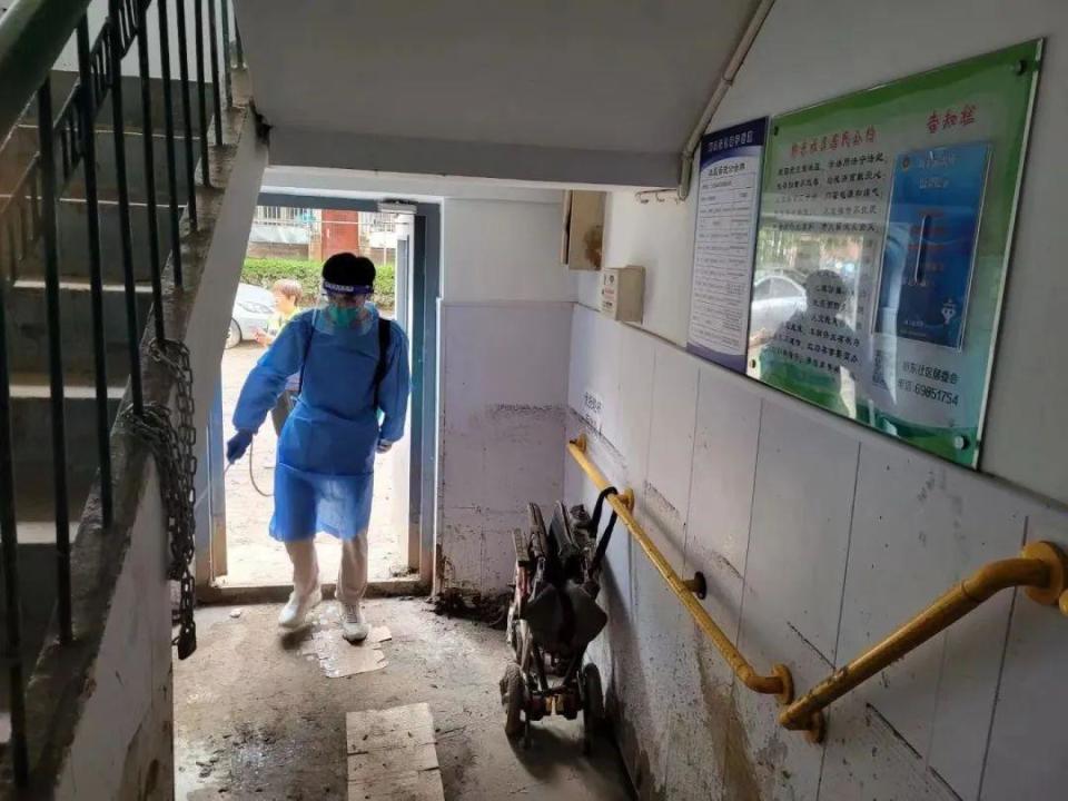 “益行志愿服務隊從8月4日17點下班后開始組織救災工作,到凌晨24點充分準備完畢??傆嫵鰟?輛汽車,志愿者們對社區內的一樓單元門口、垃圾分類驛站、居民家里、黨群活動中心、居委會物資庫、社區花園內和道路,開展清理淤泥和清洗路面工作?!睆垈惤榻B道。