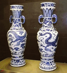大維德花瓶可能是現存最重要的青花瓷器物,其頂部附近的銘文表明它們的年代可以追溯到1351年。1935年,珀西瓦爾·大維德爵士分別從兩個收藏家手中買下它們,令這對花瓶重聚。