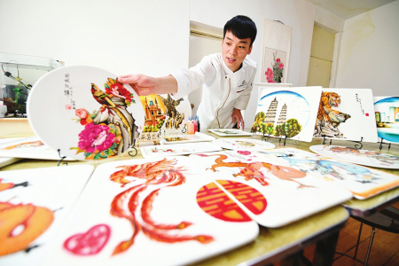 在阿峰工作室內,擺放著很多這幾年他精心制作的果醬畫作品,在方形和圓形的瓷盤上,有風景、動物、建筑……每一幅都栩栩如生,不僅細膩美觀,還可食用。“平日里,我除了工作,最喜歡在安靜的時候琢磨,有時為了一個作品要花上五六個小時來創作。果醬畫讓我大開眼界,不僅能畫出流暢的線條,還能畫出五彩斑斕的世界,更讓我找到了人生的目標。”阿峰介紹。