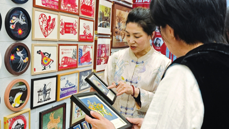 初夏時節,走進山西上林苑傳統剪紙藝術研究所,身著一襲傳統服飾的王銀鳳笑吟吟地講述了她與太原剪紙、與非遺研培的往事,她的身后是內容多樣、色彩豐富的剪紙作品。與剪紙結緣四十余載,王銀鳳剪出了一段充滿堅守與創新的人生故事。