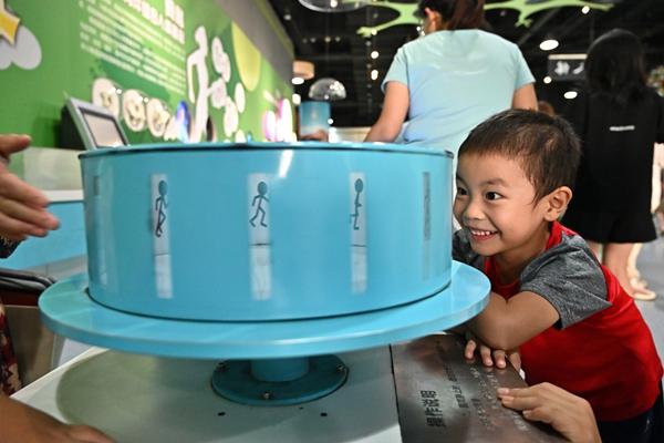 8月20日,山西省太原市,兒童在山西省科技館內(nèi)觀察視覺暫留現(xiàn)象。今年暑假期間,山西省科技館推出“科學(xué)嗨一夏”系列科普活動,旨在激發(fā)不同年齡段孩子們的好奇心和探索欲。視覺中國供圖