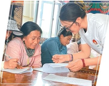 實踐隊隊長阿牛為藏族群眾解讀居民醫保政策。