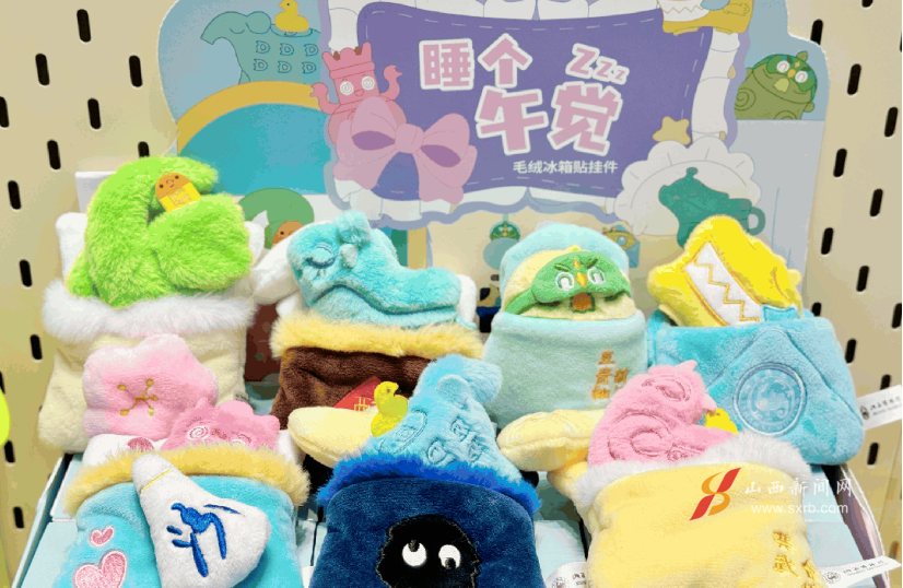 除“睡個午覺”系列外,山西博物院“逛吃逛吃”毛絨掛件、“檐之?有物”古建筑毛絨玩具、其樂“絨絨”噗噗捏捏樂毛絨掛件、“卣”點意思毛絨筆記本,以及暑期爆款文創發飾等新品,造型生動、實用美觀,以“輕量化”形態讓觀眾近距離感受山西歷史文化魅力。