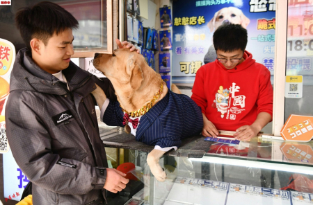 在成為“店長”之前,“憨憨”早就是小區里的“小名人”。它性格溫順、善解人意、感情豐富,從不咬人,是孩子們最喜歡的玩伴。李旭戈說,“憨憨”為全家帶來了無數歡樂和滿滿的情緒價值,是家里的“開心果”。