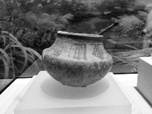 高淳博物館的二樓是一個“通史”展,從6300年前薛城聚落開始說起。彩陶罐、黑斑玉鐲、黑陶杯、螺螄、貝殼……這些“寶貝”都是從高淳薛城遺址出土的,它們已經有6300歲了。這些陶器,造型優美,尤其是黑陶杯,造型堪稱時尚,杯口還特意設置了喝水的凹槽。