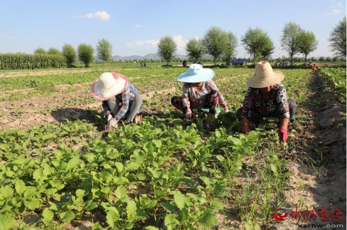 8月11日,原平市新原鄉平地泉村綠油油的芥菜長勢喜人,農民正在除草。近年來,該市大力調整農業產業結構,通過復播“訂單秋菜”,鼓了農民“錢袋子”。諸 震 攝