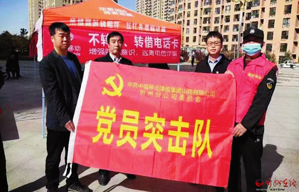 為普及防范電信網絡新型違法犯罪知識,最大限度地減少電信網絡詐騙案件發生,切實做好人民群眾的安全防范教育,10月14日,忻州移動公司黨員突擊隊帶領員工深入雁門小區開展防電信詐騙宣傳活動。