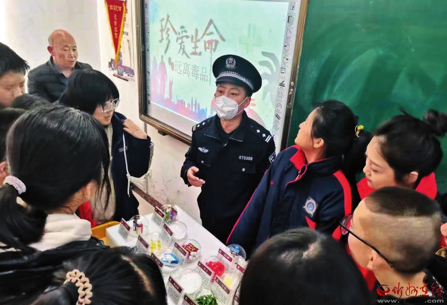 為持續深化毒品預防教育工作,增強師生識毒、防毒、拒毒的意識和能力,筑牢校園禁毒防線,近日,市公安局忻府分局董村派出所民警聯合社區戒毒(康復)中心工作人員,走進董村中學,開展禁毒宣傳教育活動。