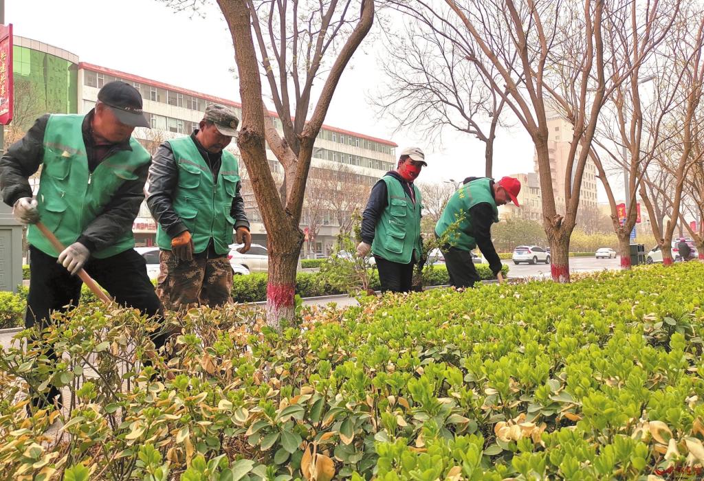 4月14日,新綠園林隊工作人員正在忻州城區長征西街補植綠籬。忻府區從三月上旬開始啟動春季植綠補綠工作,對部分道路、小微地塊等進行植綠補綠,消除黃土裸露,提升整體綠化水平。(宮清華 攝)