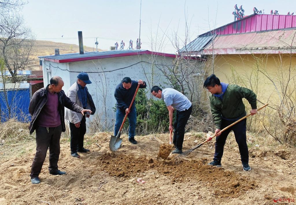 近幾年,駐村工作隊員們為此想了很多點子。今年春季,他們帶領村民開辟了“三道壟”。第一道壟在村委會屋后種蔬菜,由他們帶頭,在村內先行打造庭院經濟示范地。第二道壟在村內荒坡上的大棚里,準備種綠皮無籽大西瓜,推廣旱地西瓜種植。第三道壟在村東頭的山坡上,計劃種植杏樹林,待天氣轉暖后再種植一些適合林下生長的芍藥、玫瑰、月季等,發展觀賞經濟。
