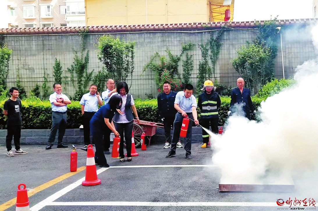 培訓結束后,參訓者對各類消防器具輪流進行了實踐操作,并開展了消防安全演練。通過滅火實操訓練,大家對滅火器“提拔握壓”四要訣掌握得更加熟練。
