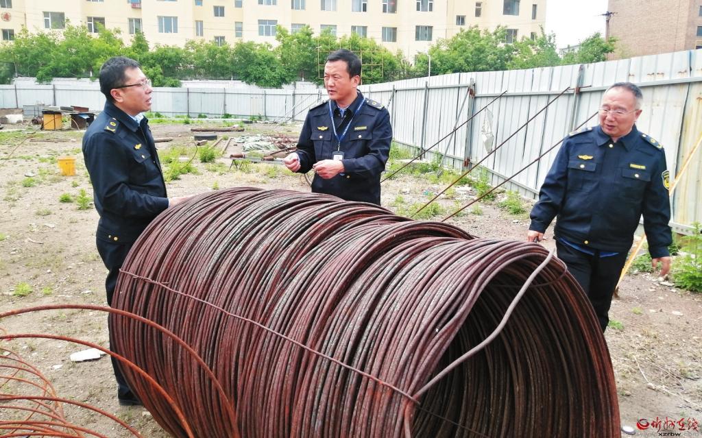 為加強產品質量安全監管,嚴格落實安全生產責任制,確保建筑材料質量安全,按照建筑材料產品質量安全專項整治工作方案,近日,市市場監管局對我市建筑材料生產經營單位,開展建筑材料產品質量安全專項檢查。圖為工作人員深入鋼材市場進行檢查。 (李 濤攝)