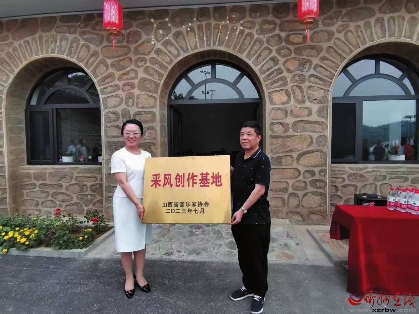 省音協常務副主席白云,原平市委常委、宣傳部部長張志男為采風創作基地愛木圖景區授牌。