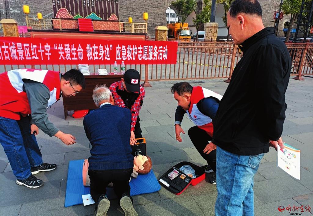 為進一步提高景區從業人員和游客的安全意識,增強應對突發狀況的能力,近日,忻州市紅十字會的志愿者們走進忻州古城景區開展應急救援培訓活動。