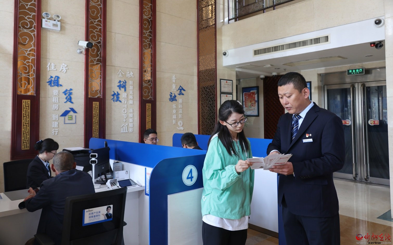 建行五臺山風景區支行的工作人員正熱情地為客戶進行業務宣傳。在營業大廳里,該行員工為客戶耐心細致地講解各項金融業務的特點和優勢,從專業的角度為客戶分析不同業務的適用性,以滿足客戶多樣化的需求,讓客戶在輕松的氛圍中了解金融產品,感受建行服務的貼心與溫暖。(宮清華攝)