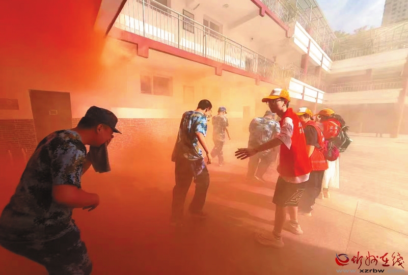 活動開始,模擬教學樓發生火災。在濃煙環境中,學生們按照預先指定的逃生路線,在消防志愿者的引導下彎腰低頭,迅速而有序地撤離至安全地帶。在“模擬火災實戰”中,同學們真切感受到了火災的危險性,更深刻體會到了消防安全的重要性,增強了大家在面對火災時的“實戰能力”。