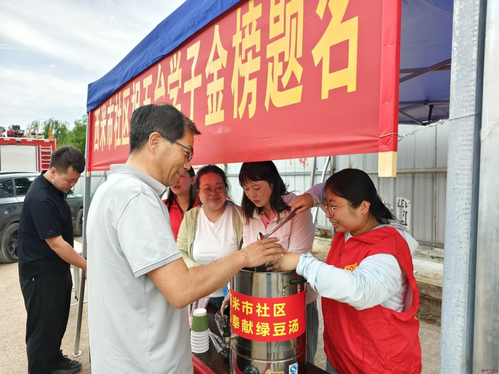 在平凡中堅守,在奉獻中閃光。五臺縣委社會工作部組織社區志愿者全員上陣,助力高考。(王俊山)