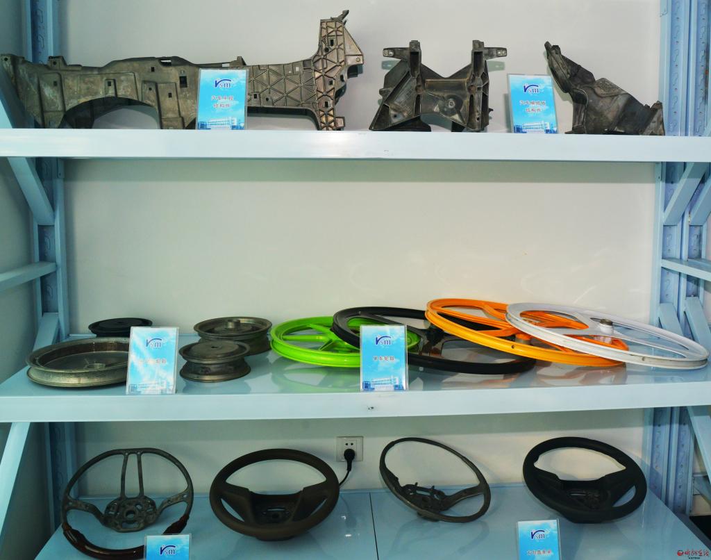 在兩位主管的帶領下,記者參觀了云海鎂業公司鎂合金產品展覽室。展現在記者眼前的是用鎂合金制作的汽車儀表、方向盤、輪轂以及各種電腦殼體、單體鎂合金成品等產品,種類繁多、琳瑯滿目,讓人目不暇接。