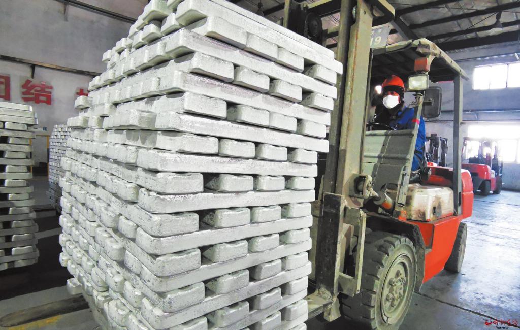 五臺云海鎂業工人正在進行成品轉運。 張存良 攝