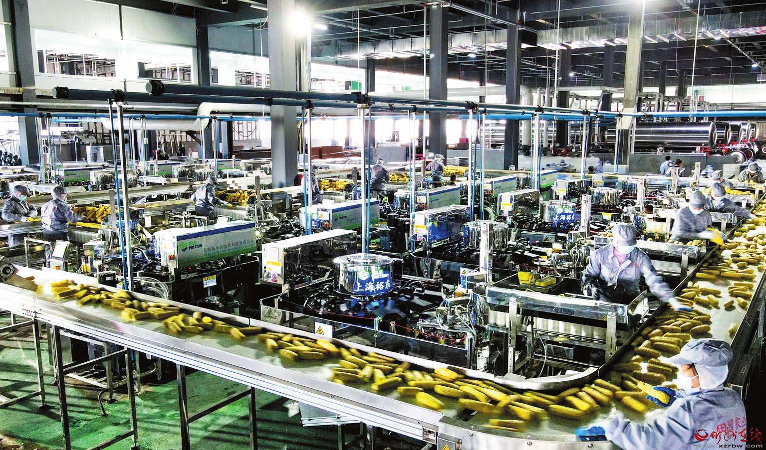 總占地面積約100畝的五寨縣甜糯玉米產業園,坐落于五寨縣的國家農村產業融合發展示范園。園內采用國內先進的生產工藝,從機器去皮、切梗去尖、巴氏滅菌、真空包裝到速凍隧道、智能庫房等,實現去皮、切頭、清洗、分級、殺菌、蒸煮、包裝的全流程機械化自動化,極大地提高了加工效率,每小時可加工甜糯玉米27萬穗,最大限度保留了玉米的色、香、味和營養成分。