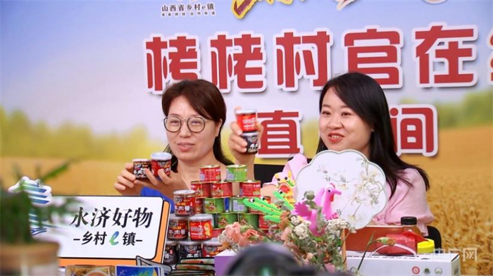 永濟市栲栳鎮鄉村e鎮里,主播正在銷售當地農特產品(央廣網發 永濟市融媒體中心供圖)