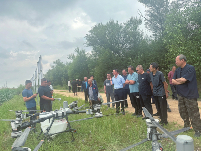 “快看!無人機噴藥還能走‘之’字形!”種糧大戶們仰著脖子,手機鏡頭追著空中靈巧翻轉的植保無人機。只見無人機沿著規劃好的路線在田間穿梭,所到之處大片白霧均勻噴灑,其高效、精準的作業能力,令觀摩人員贊嘆不已。隨后,技術人員進行了霧點測試采集,藥霧均勻得像篩過一樣。往常需要十多人忙活一整天的打藥作業,如今這臺“鐵蜻蜓”兩小時就能搞定。技術員向大家介紹,無人機植保還能根據不同地塊的病蟲害情況,實現精準施藥,有效減少農藥使用量,降低環境污染。