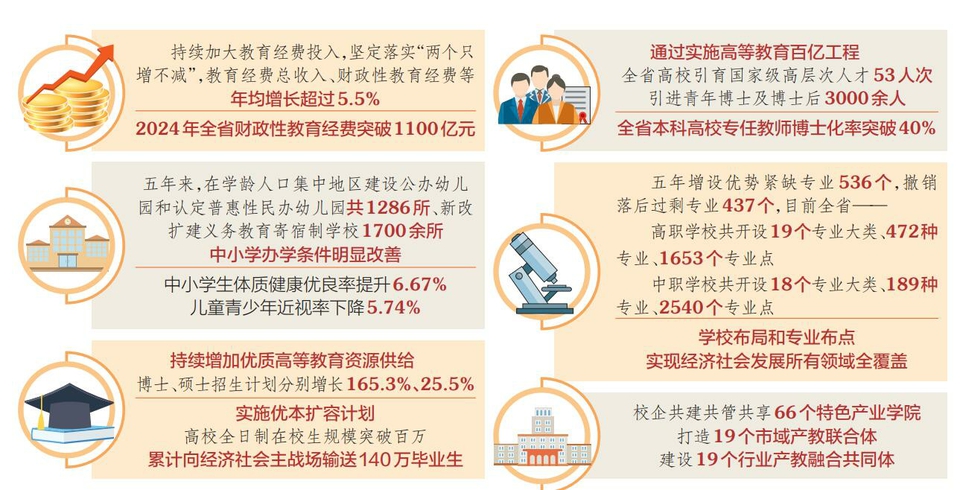 教育是國之大計、黨之大計,也是每個家庭的心頭事。“十四五”以來,在省委、省政府堅強領導下,全省教育系統深入貫徹落實習近平總書記關于教育的重要論述,全面貫徹黨的教育方針,堅定落實教育優先發展戰略,有力推動“十四五”規劃各項指標任務全面完成,為“十五五”時期加快建設教育強省奠定了堅實基礎。