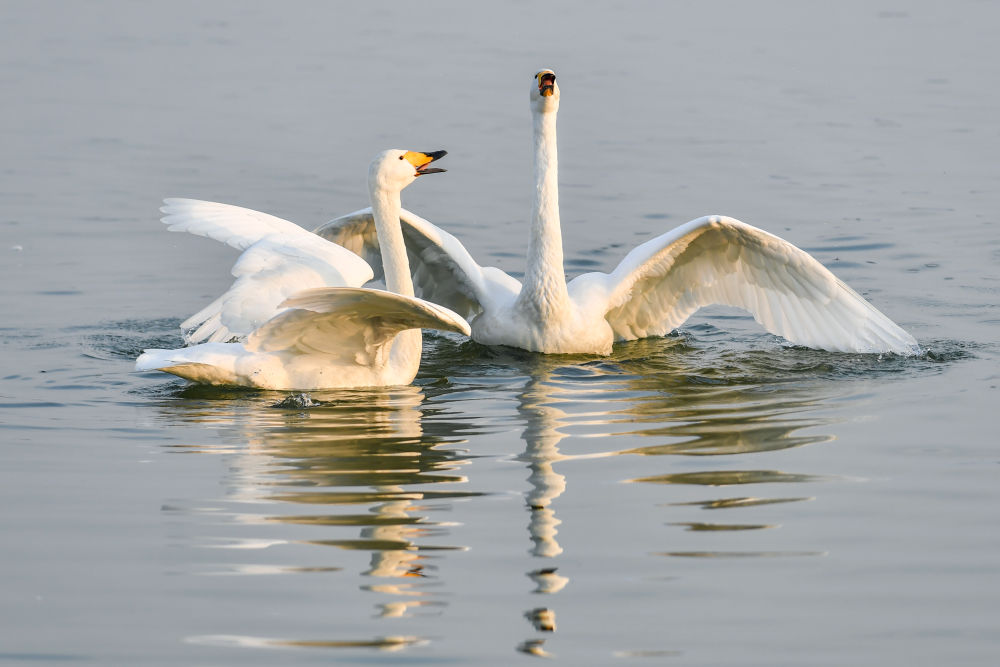在山西平陸黃河濕地保護(hù)區(qū),一批批來自西伯利亞的野生大天鵝陸續(xù)飛抵,開始越冬。據(jù)悉,自10月底起,大天鵝已開始分批抵達(dá)黃河濕地,進(jìn)入12月后數(shù)量明顯增加,目前該區(qū)域觀測到的越冬天鵝已超5000只,到明年1、2月份可達(dá)上萬只。它們悠然自得的身影,為黃河岸畔增添了一道靈動的風(fēng)景線。