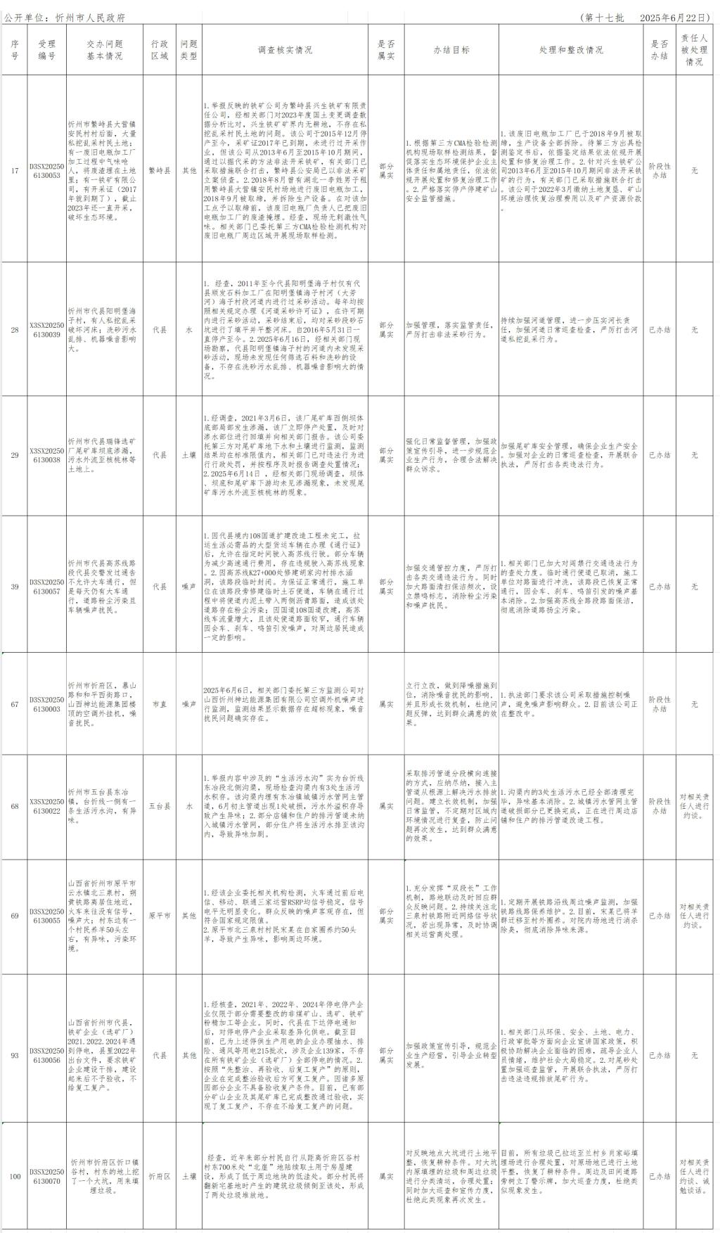 中央生態環境保護督察組群眾信訪舉報轉辦和邊督邊改公開情況一覽表(第十七批)