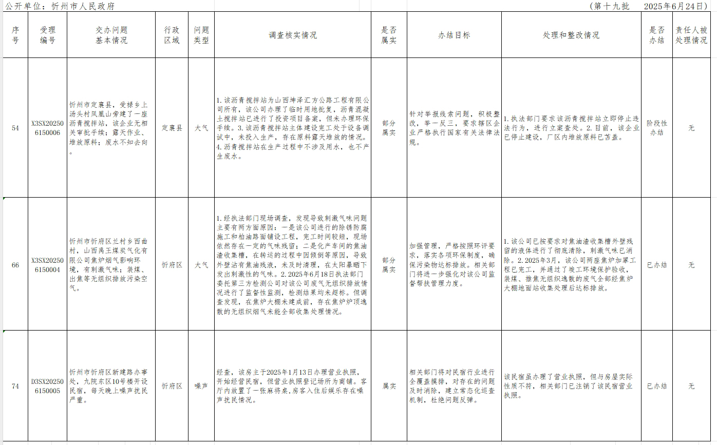 中央生態環境保護督察組群眾信訪舉報轉辦和邊督邊改公開情況一覽表(第十九批)
