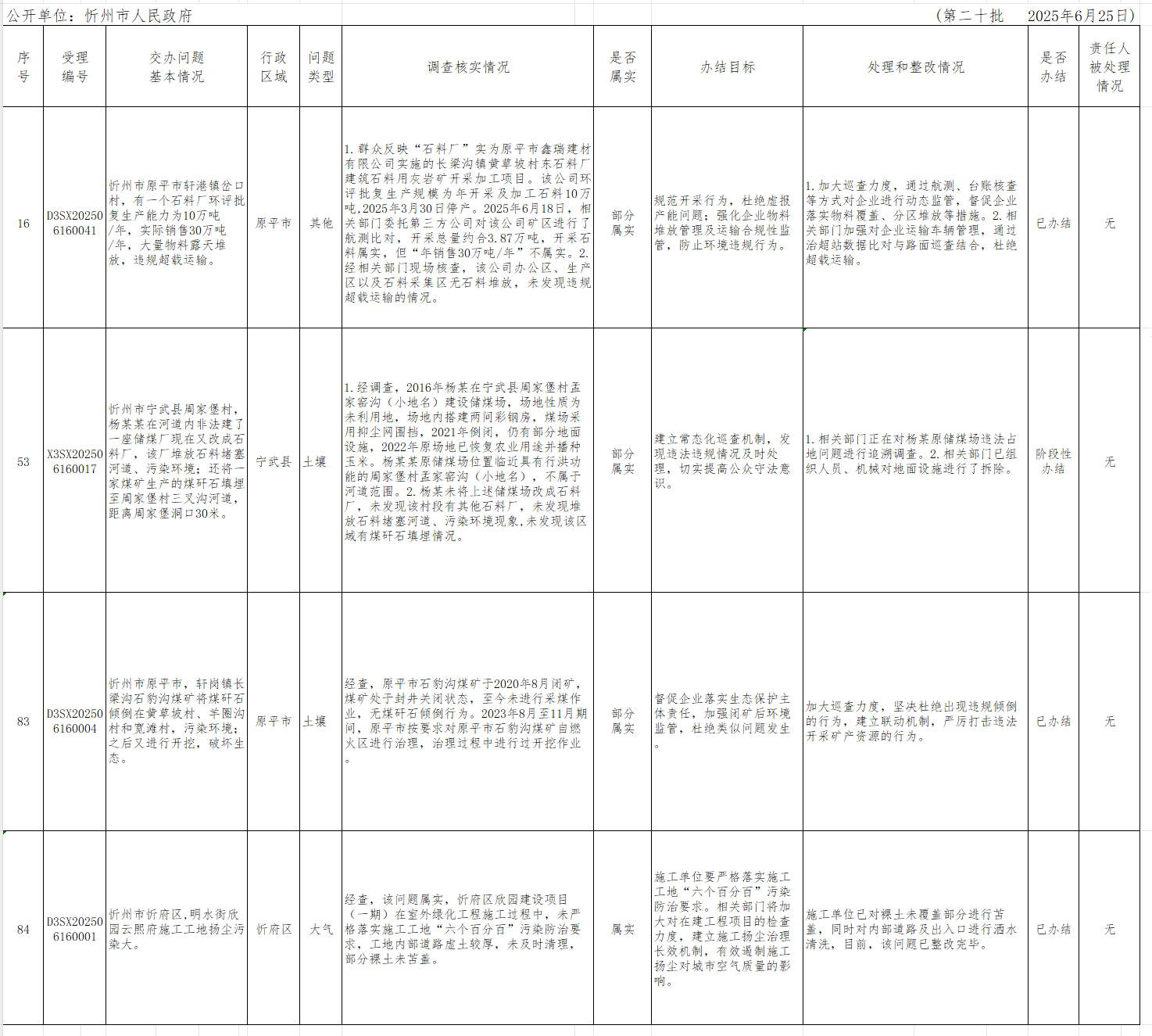 中央生態環境保護督察組群眾信訪舉報轉辦和邊督邊改公開情況一覽表(第二十批)