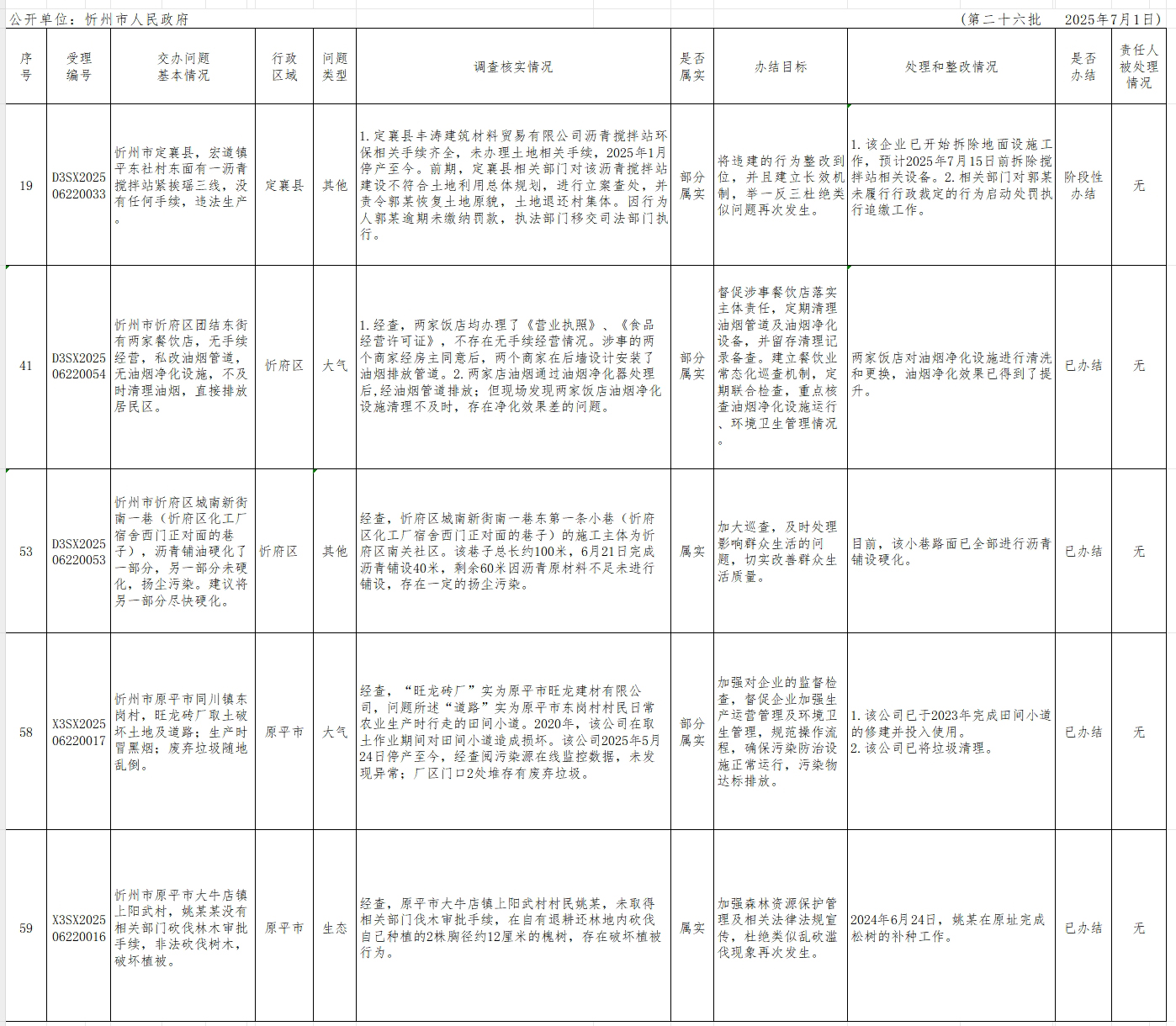 中央生態環境保護督察組群眾信訪舉報轉辦和邊督邊改公開情況一覽表(第二十六批)