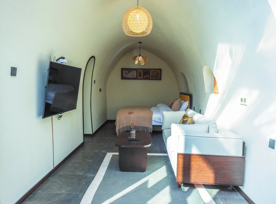 設計獨特的三層小院子,是游客喝茶、露營、抄經、健身的好去處。民宿于2024年2月9日(大年三十)試營業,共有22間不同主題的客房,節假日期間每天客滿,平時的入住率在80%以上,深受游客歡迎。(劉耀 宮可欣)