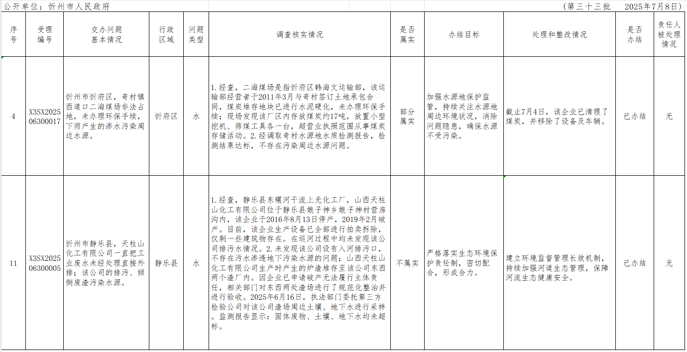 中央生態環境保護督察組群眾信訪舉報轉辦和邊督邊改公開情況一覽表(第三十三批)