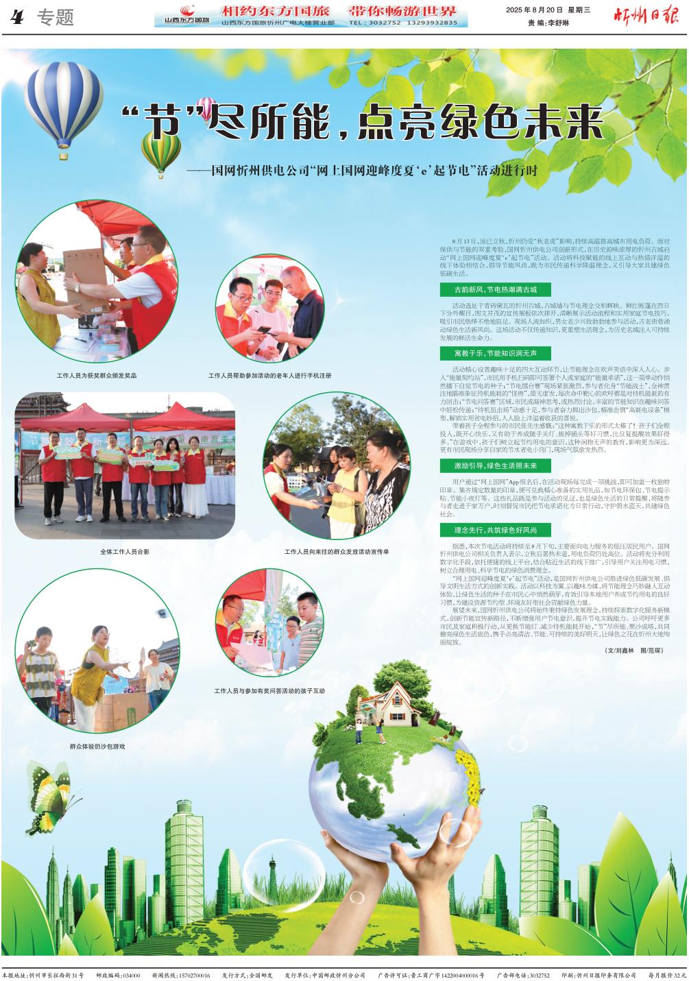 “網(wǎng)上國(guó)網(wǎng)迎峰度夏‘e’起節(jié)電”活動(dòng),是國(guó)網(wǎng)忻州供電公司推進(jìn)綠色低碳發(fā)展、倡導(dǎo)文明生活方式的創(chuàng)新實(shí)踐。活動(dòng)以科技為翼、以趣味為媒,將節(jié)能理念巧妙融入互動(dòng)體驗(yàn),讓綠色生活的種子在市民心中悄然萌芽,有效引導(dǎo)本地用戶養(yǎng)成節(jié)約用電的良好習(xí)慣,為建設(shè)資源節(jié)約型、環(huán)境友好型社會(huì)貢獻(xiàn)綠色力量。
