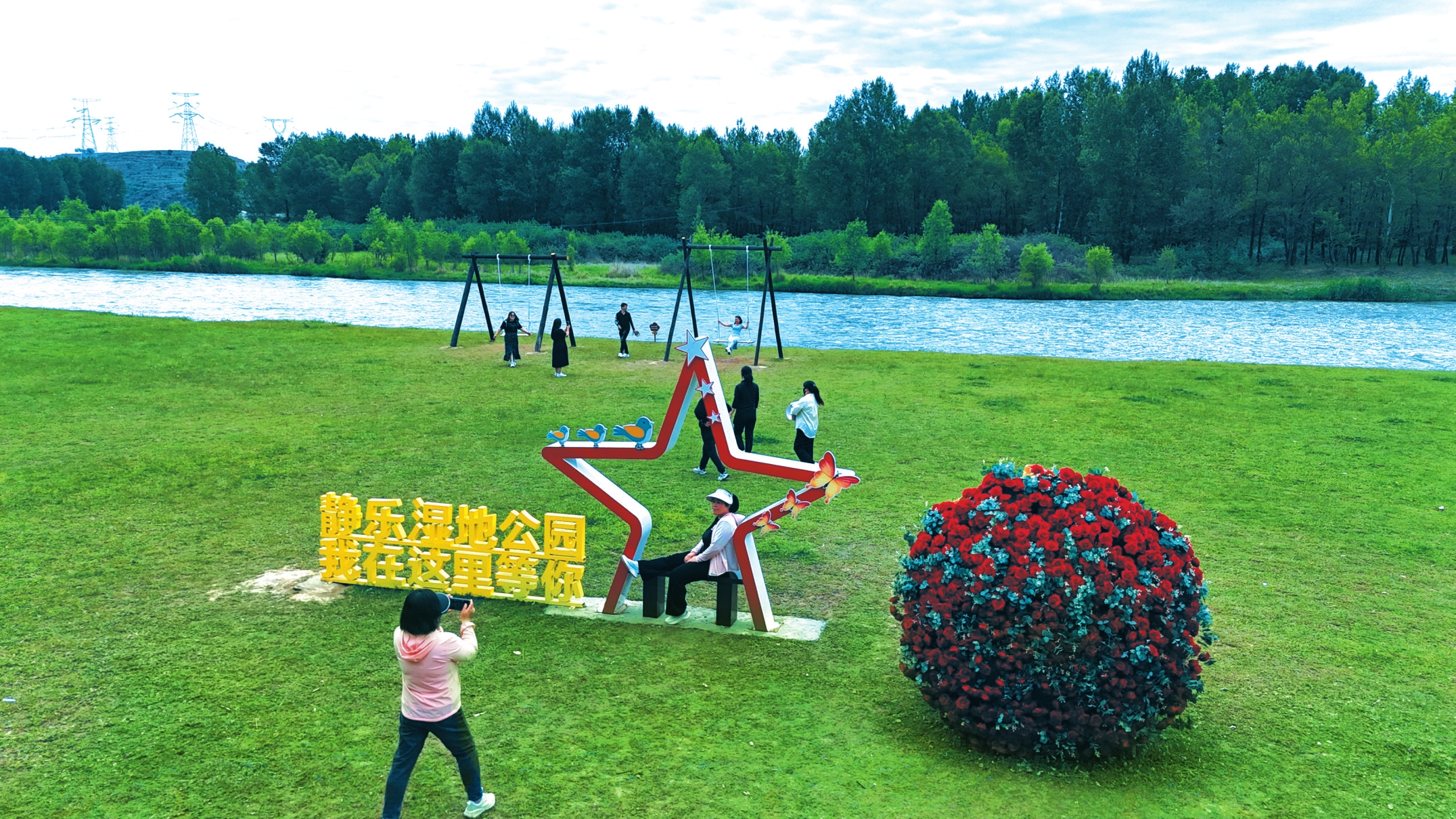 靜樂汾河川國家濕地公園的特色“網紅打卡點”吸引游客駐足拍照