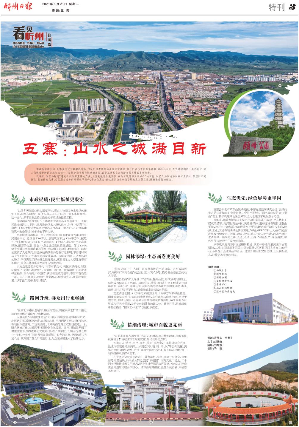 清晨的清漣公園,晨霧漫過波光粼粼的河面,市民們沿著新鋪的曲線步道晨練,孩子們在仿古長廊下嬉戲;頤峰公園里,萬賢塔在朝陽下巍然屹立,老人們伴著舒緩的音樂打太極……這幅充滿生機與愜意的畫面,正是五寨縣全力打造宜居縣城的生動縮影。 近年來,五寨縣錨定“建成忻州西部重要的產業、人流集散地和集聚區,成為區域經濟活動中心”的目標,以提升縣城內涵和品位為核心,從空間布局優化、基礎設施完善、公共服務改善到治理水平提升,全方位發力,讓這座依山傍水的小城愈發宜居宜業,綻放出獨特的魅力。 市政提質:民生福祉更殷實 “以前冬天取暖總擔心溫度不夠,現在生物質發電余熱供熱通到了家,屋里很暖和!”家住五寨縣老舊小區的王大爺難掩喜悅。這一變化,源于五寨縣持續推進的市政設施提質工程。 圍繞群眾“急難愁盼”,五寨縣加大老舊小區改造步伐,讓老城區煥發新活力。同時,統籌推進供水、供暖、供電、供氣、排污等“生命線”工程,生物質發電余熱供熱項目惠及千家萬戶,人防設施建設筑牢安全防線,城市功能不斷完善。 公共服務設施提質升級。在原體校舊場地重新規劃建設的全民健身中心,總投資2000萬元,總建筑面積達3000平方米,按照“一館多用”原則,內設12個乒乓球場、4個羽毛球場和1個標準籃球場,配套的洗浴、更衣、休息室讓運動體驗更舒適。環館300米健身步道與瀝青道路兼具健身、消防和停車功能,翻修后的門球場地更換了人造草皮,加蓋鋼結構頂棚并配備燈光照明,不再受時間與天氣的限制,方便市民靈活安排運動。這座設計前衛、造型新穎的場館,不僅滿足了群眾日常健身需求,更具備承辦大型體育賽事的能力,為全縣體育事業發展注入強勁動能。 實施縣城游園步道綠化、市容市貌美化、街區夜景亮化、城區環境凈化、大街小巷硬化“五大提質工程”提升縣城顏值:沿河步道綠意盎然,街頭巷尾干凈整潔,街區夜景流光溢彩,市容市貌煥然一新。走在五寨街頭,路面平整寬闊,環境清爽宜人,夜景溫馨浪漫,實現“出門見綠、移步見景”。 路網升級:群眾出行更暢通 “以前北環路段總堵車,路面拓寬后,現在真好走!”常年跑運輸的李師傅對道路變化感觸頗深。 五寨縣以“構建便捷交通”為目標,持續完善縣城路網布局。北環路拓寬、南環路改造、東環路北延、濱河西路擴建、北環橋加寬等項目相繼落地,寧遠街西延、北峰街西延等工程加速推進,一批斷頭路被打通,交通擁堵難題得到有效緩解。此外,縣城還開通了覆蓋重要節點的城郊公交線路,新增了停車位,長期困擾群眾的“出行難、停車難”問題得到顯著緩解。如今的五寨,路網如織、四通八達,既方便了群眾日常出行,也為縣城發展注入了強勁動力。 園林添綠:生態畫卷更美好 “推窗見綠、出門入園”,是五寨市民的生活日常。這座被清漣河、嶠峪河“雙河合抱”的縣城,正以“綠”為筆,描繪著生態宜居的動人圖景。 五寨縣堅持“擴大綠量、豐富內涵、提高品位、形成景觀”原則,讓綠色成為城市的主色調。清漣公園、清荷公園改擴建工程讓老公園煥新顏,南山公園、西城公園、運輸西街公園等新公園相繼建成,街頭綠地、街心花園星羅棋布,綠廊綠道串聯起城市角落。 走進清漣公園,8.1萬平方米的園區內,6萬平方米被綠色覆蓋,南峰灌渠穿園而過,清漣河清澈見底,亭臺雕塑與山水相映,盡顯生態之美;頤峰公園里,奇花異草與亭臺樓閣和諧共處,60米高的萬賢塔成為標志性景觀,是群眾休閑健身的好去處。截至目前,縣城綠化率持續提升,“國家園林城市”創建穩步推進。 精細治理:城市面貌更亮麗 “以前小商販占道經營,造成交通擁堵,通過精細治理,問題很快就解決了!”說起城市管理的變化,居民們紛紛點贊。 五寨縣以“潔凈、有序、文明、美麗”為理念,扎實推進綜合治理,讓城市管理更精細高效。從規范“亭、箱、牌、桿、線”等公共設施,到強力治臟、治堵、治亂、治違,再到完善物業管理、提升城市文明,每一項舉措都聚焦群眾需求。 在十字街鹽業公司改造中,健身器材、涼亭、公廁一應俱全,這里曾是閑置地塊,如今成為附近居民“幸福園”;文苑文化廣場上,二十四孝浮雕傳遞著文明新風,健身器材旁滿是歡聲笑語,換熱站的建成更讓周邊居民暖身又暖心。城市治理精細化,讓群眾獲得感、幸福感不斷提升。 生態優先:綠色屏障更牢固 五寨縣東南有蘆芽山巍峨挺拔,中部有清漣河縱貫全境,良好的生態是這座城市的寶貴財富。全縣牢固樹立“綠水青山就是金山銀山”理念,持續構建綠色生態屏障,全力創建國家級生態示范縣。 近年來,隨著大規模國土綠化行動扎實推進,“12233”生態林業工程成效顯著,黃河流域防護林、天然林保護、退耕還林等項目讓群山更綠,10萬畝小流域綜合治理讓水土更固;碳達峰行動深入實施,能源、工業、交通等領域綠色轉型加速,“綠色GDP”不斷壯大;污染防治攻堅戰持續發力,“控煤、治企、管車、降塵”讓天朗氣清,河道治理讓水清岸綠。如今的五寨,天藍、水清、山綠,“綠色生產、綠色消費、綠色出行、綠色居住”成為新風尚。 從市政設施完善到交通路網暢通,從園林綠地拓展到城市治理精細,從生態屏障筑牢到民生福祉提升,五寨縣正以實實在在的行動,不斷提升縣城內涵與品位。這座忻州西部宜居之城,正以嶄新姿態,迎接