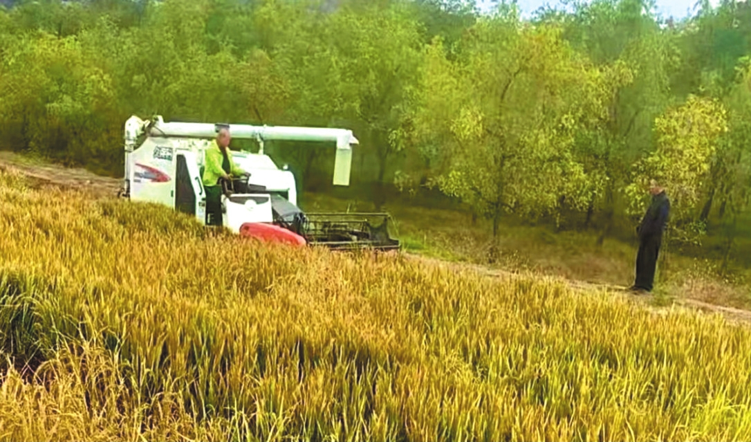 金秋時(shí)節(jié),保德縣馮家川鄉(xiāng)的20余畝鹽堿地試種稻田里,金黃稻穗壓彎了稻稈,微風(fēng)拂過,掀起層層“金浪”。隨著聯(lián)合收割機(jī)的轟鳴聲響起,成片水稻被快速切割、脫粒、清選,飽滿的谷粒源源不斷地被送入儲(chǔ)糧箱,標(biāo)志著當(dāng)?shù)厥状嘻}堿地水稻試種迎來豐收。經(jīng)測算,畝產(chǎn)達(dá)830斤左右,順利達(dá)成預(yù)期產(chǎn)量目標(biāo)。