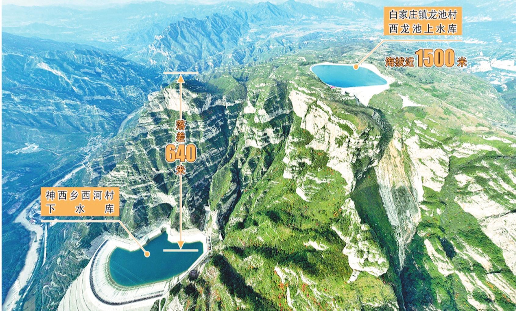 車行50分鐘蜿蜒山路,從神西鄉西河村的下水庫,抵達海拔近1500米的白家莊鎮龍池村西龍池的上水庫,“天空之池”與“山谷之湖”遙相呼應,640米的落差讓滹沱河水在群山間完成能量的循環轉換。