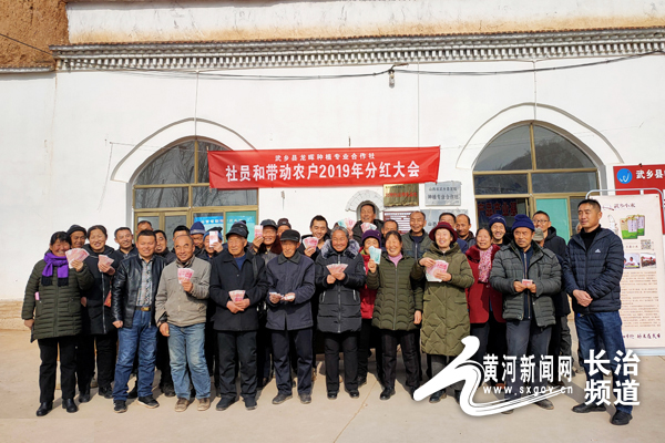 圖為2019年武鄉縣龍暉種植專業合作社農戶分紅大會現場。 成立合作社帶領貧困戶一起奔小康 “只要認準的事,就不能前怕狼后怕虎,縮手縮腳只會錯失良機。有句話說得好,有夢想誰都了不起,有勇氣就會有奇跡。”當初,“狗小”剛承包小長煙村土地時,由于村民全部移民搬遷,村內沒水沒電,困難重重。他想方設法接通了照明電,建起了蓄水池,鋪通了輸水管,四處借錢支付了工人工資……在他腦海里,那時的艱辛依然歷歷在目。 一個好漢三個幫。2015年,在山西省委宣傳部扶貧工作隊的指導幫助下,在縣、鄉領導的支持下,他出資成立了龍暉種植專業合作社,購買了拖拉機和配套農機具,修通了田間路,以“公司+合作社+農戶”的模式吸納了20多戶貧困戶參與。同時,他按照市、縣農委的推廣辦法,種植滲水地膜谷子,邊種邊學,邊學邊種,從中摸索出了種植經驗。“2018年夏天入伏后,沒有下過一場及時雨。我利用滲水地膜穴播技術的優越性進行抗旱保墑,讓合作社的谷子畝產達到近400斤,而當年其他村用傳統方法種植,谷子畝產只有100斤左右,新技術就是不一樣。” 十里坡海拔1000米,陽光充足,晝夜溫差較大,溝梁縱橫,屬紅壤土地,周邊沒有任何工業污染,是種植谷子的最佳基地。合作社成立以來,韓登科一直堅持種谷子不上化肥而用羊糞施肥,堅定走綠色無公害這條路。